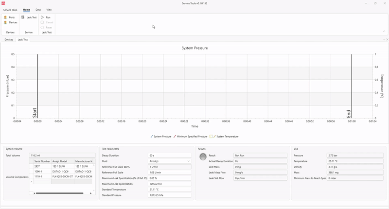 5. Open the Service Tools software and click on Leak Test in the ribbon.