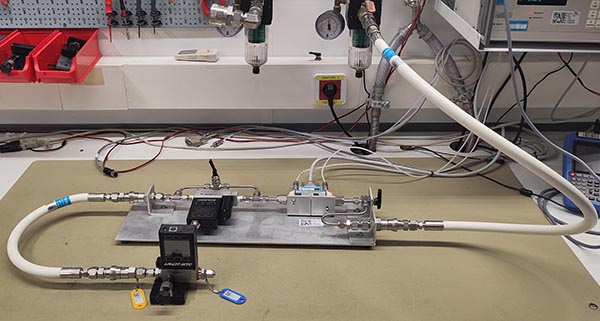 Not all components of the system need to be leak-tight—only the leak-critical parts must remain unchanged after the leak test. For example, in mass flow calibration, only the section between the reference and the device under test is critical; components before and after this section can be modified once the leak test has passed.