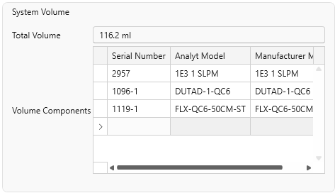 The software will query each component in the database and calculate the total internal volume of the system.